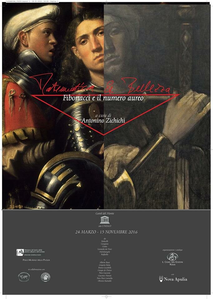 Il Polo Museale della Puglia ospita in Castel del Monte dal 24 marzo al 15 novembre 2016 la mostra "Matematica e bellezza. Fibonacci e il Numero Aureo". La mostra, come spiega Fabrizio Vona, direttore del Polo Museale, è dedicata al connubio tra due discipline, l'Arte e la Matematica, che nell'immaginario collettivo sembrano viaggiare su strade parallele, ma che sono in realtà strettamente connesse tra loro. L'armonia sottesa all'idea stessa di arte trae la sua ragion d'essere dal rigore delle proporzioni e dall'esatta applicazione dei rapporti numerici.