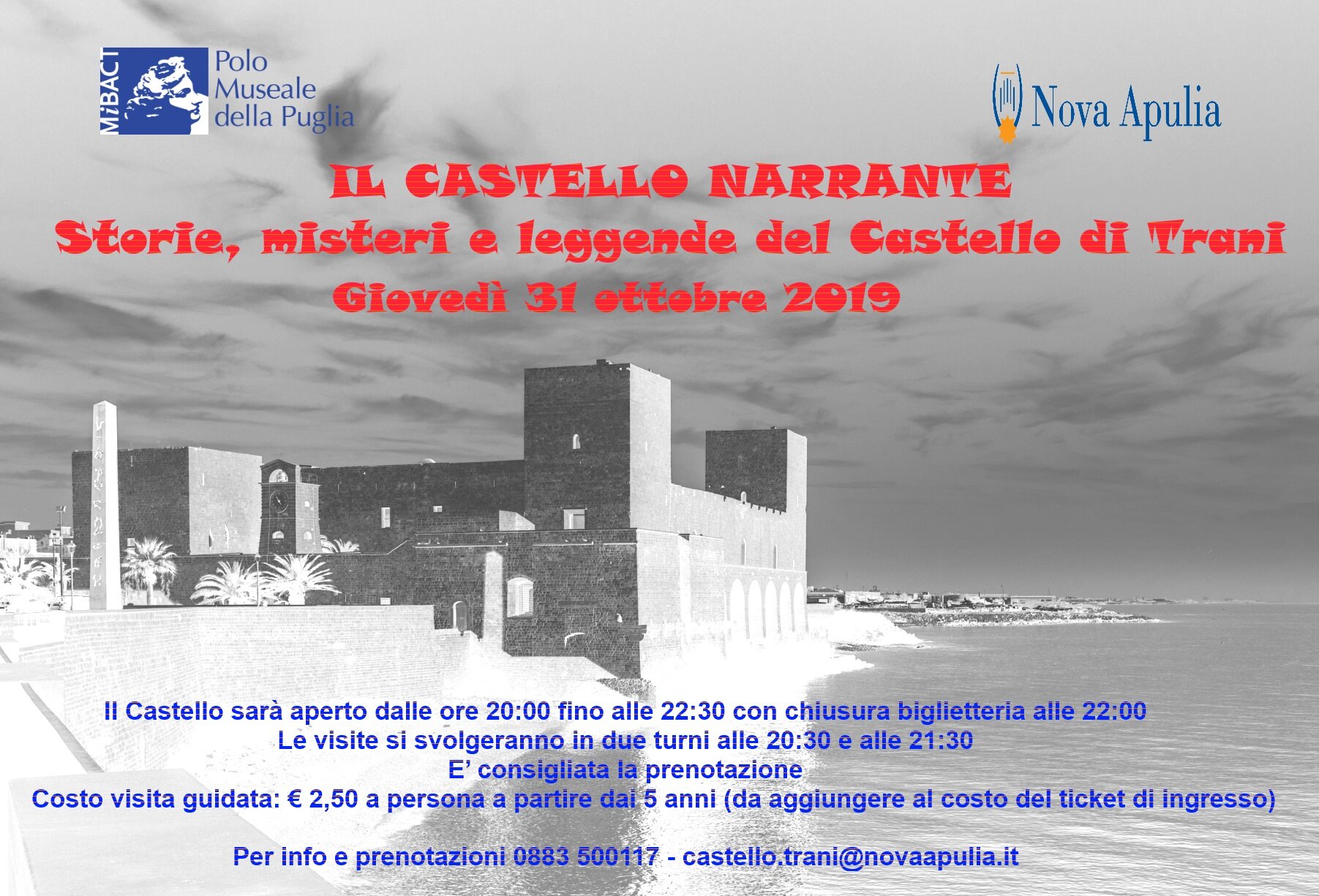 Lunedì 23 dicembre 2019 alle ore 10:30, presso il Castello Svevo di Trani, Nova Apulia proporrà un laboratorio ludico-didattico, durante il quale i piccoli partecipanti andranno alla scoperta delle sontuose sale del castello medievale e della leggenda del suo fantasma Armida. Il tutto avverrà sullo sfondo del magico Natale narrato da Charles Dickens in “A Christmas Carol”.