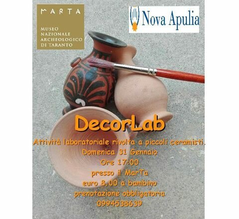 I bambini, dopo aver partecipato ad una visita guidata tematica sulle forme e le pitture delle ceramiche presenti nelle collezioni del MARTA, potranno sperimentare direttamente su vasi in miniatura in ceramica le tecniche delle figure nere, figure rosse e della sovraddipinta. I tutor forniranno loro i supporti materiali necessari al laboratorio e li seguiranno nella decorazione del manufatto che porteranno a casa come ricordo dell'esperienza fatta.